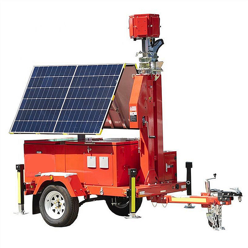 This innovative solar-powered lighting tower combines high-intensity illumination with advanced monitoring